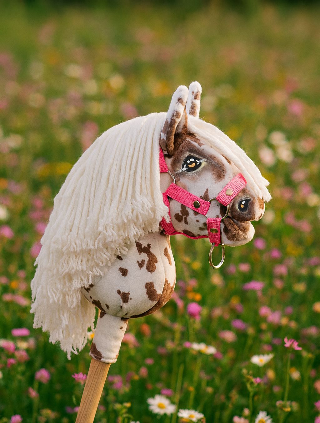 Super Steckenpferd – Format A5. Realistisch, handgenäht, handbemalt und schattiert. Jedes Steckenpferd ist ein Unikat. Sorgfältig geformt, um einem echten Pferd so weit wie möglich zu entsprechen. Sehr stabil – verdreht sich nicht und bewegt sich nicht. Im Inneren eine spezielle stabile Konstruktion, leicht, aber kräftig, um das Pferd stabil und haltbar zu machen.