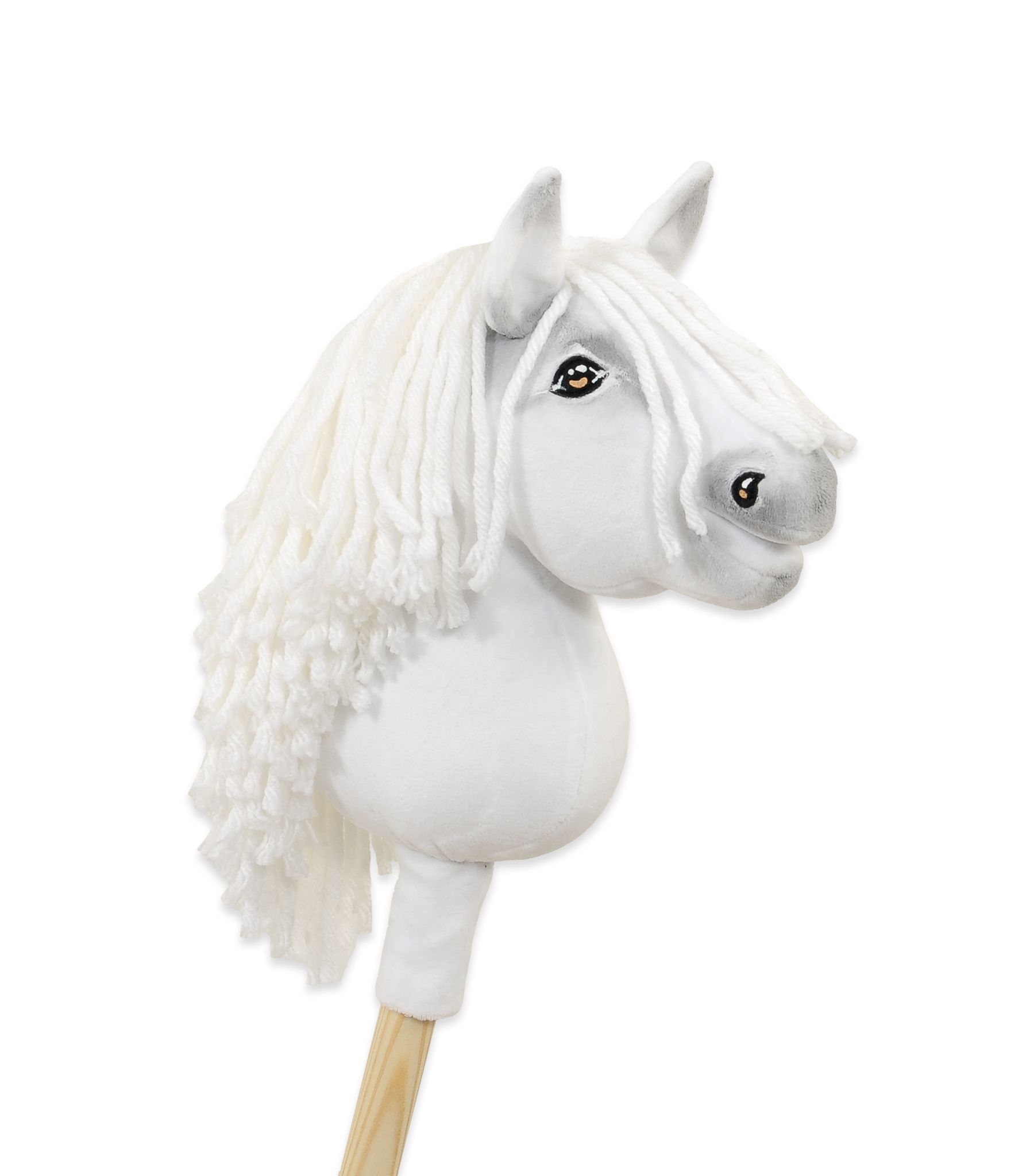 Super Hobby Horse – schönes realistisches Pferd mit Holzstock – weißes Pferd