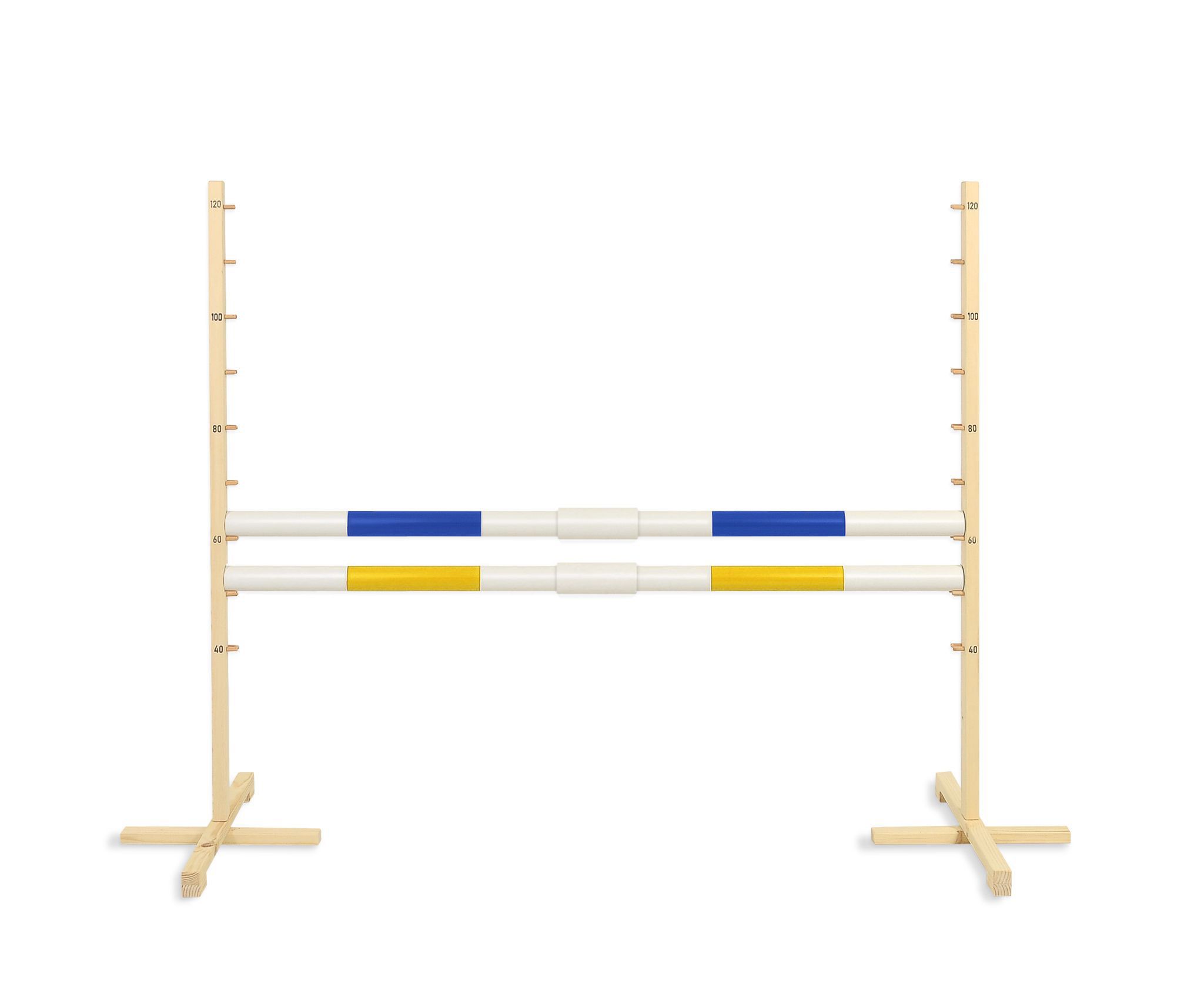 The obstacle is durable and safe, made of perfectly sanded pinewood to prevent injuries when jumping or moving the stand. The obstacle has stable feet for secure support. The bars are made of plastic, are lightweight, and are available in several colors.