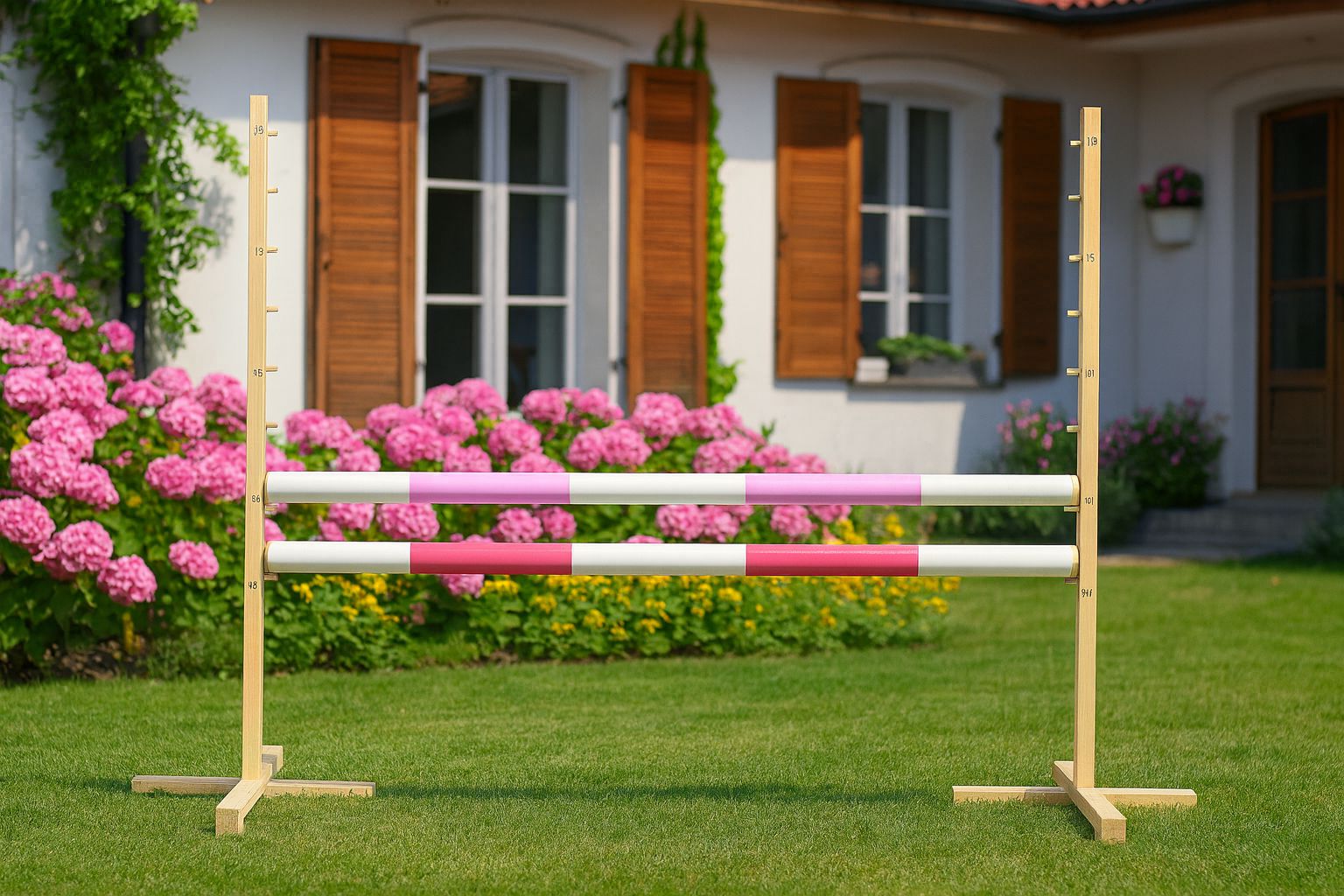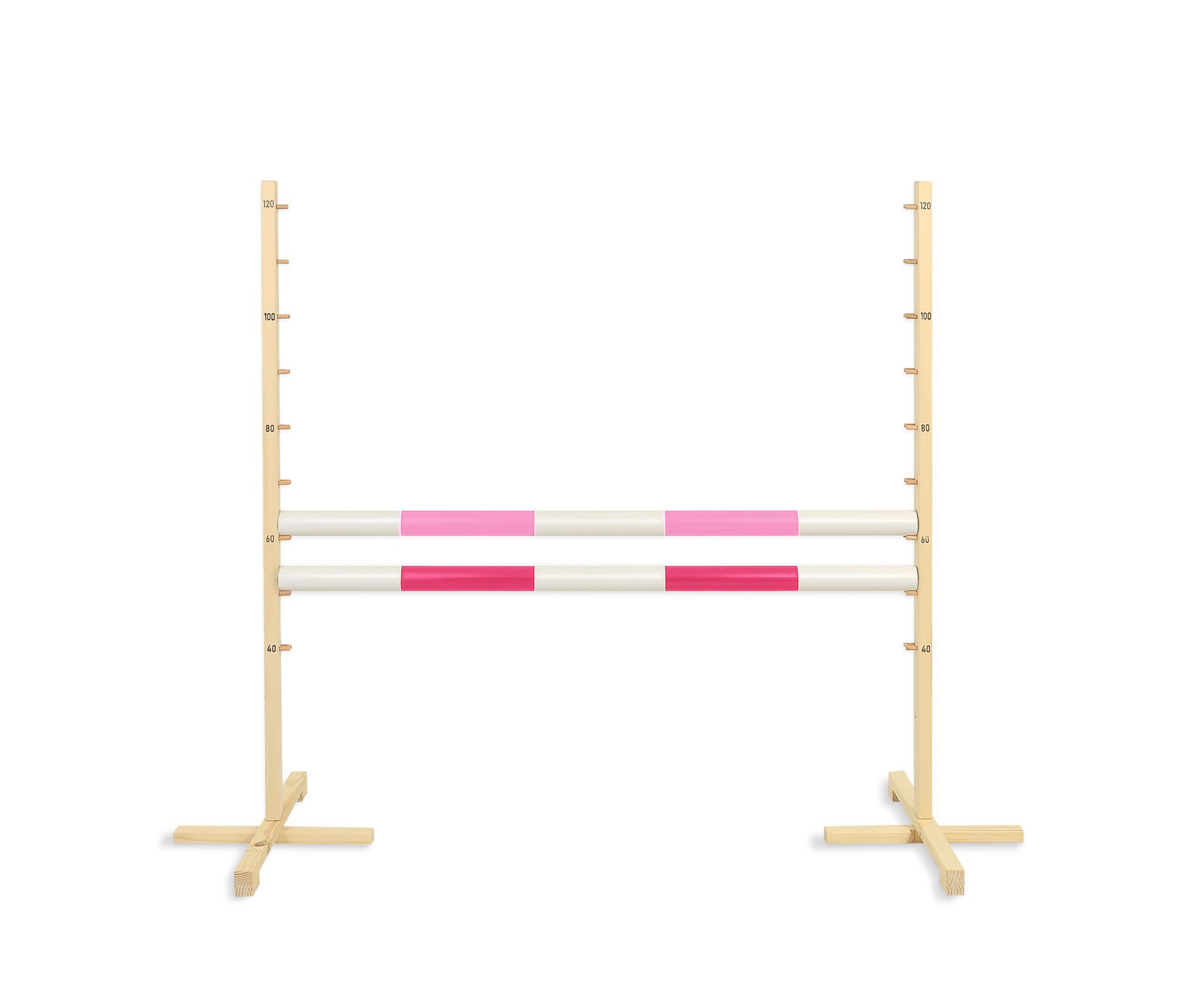 Springhindernis für Hobby-Pferd 120cm, mit zwei Stangen – helles Rosa und Pink